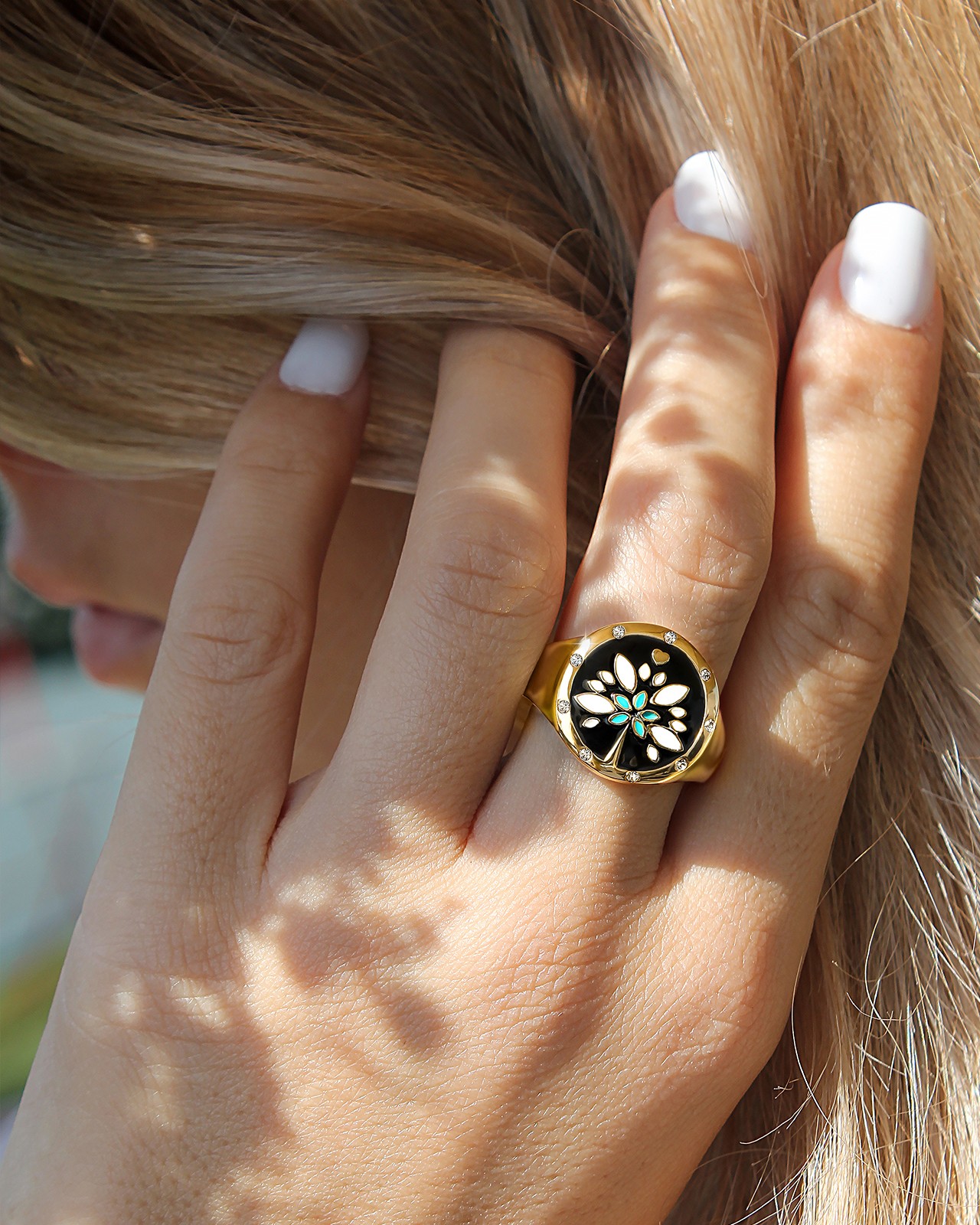 Sa forme chevalière lui confère une beauté inégalable qui illuminera instantanément votre main.