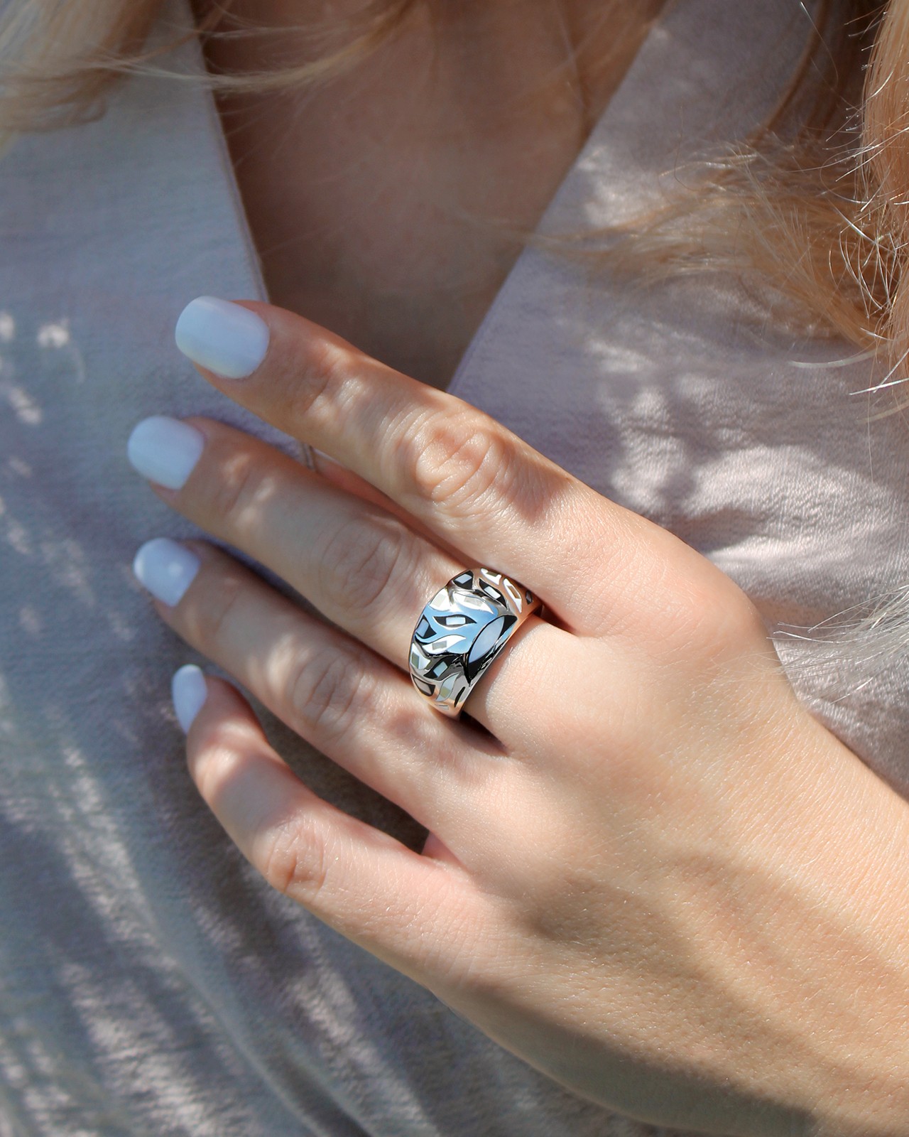 Sa forme bombée apporte du volume qui viendra mettre en valeur votre main pour faire de ce bijou une pièce unique.