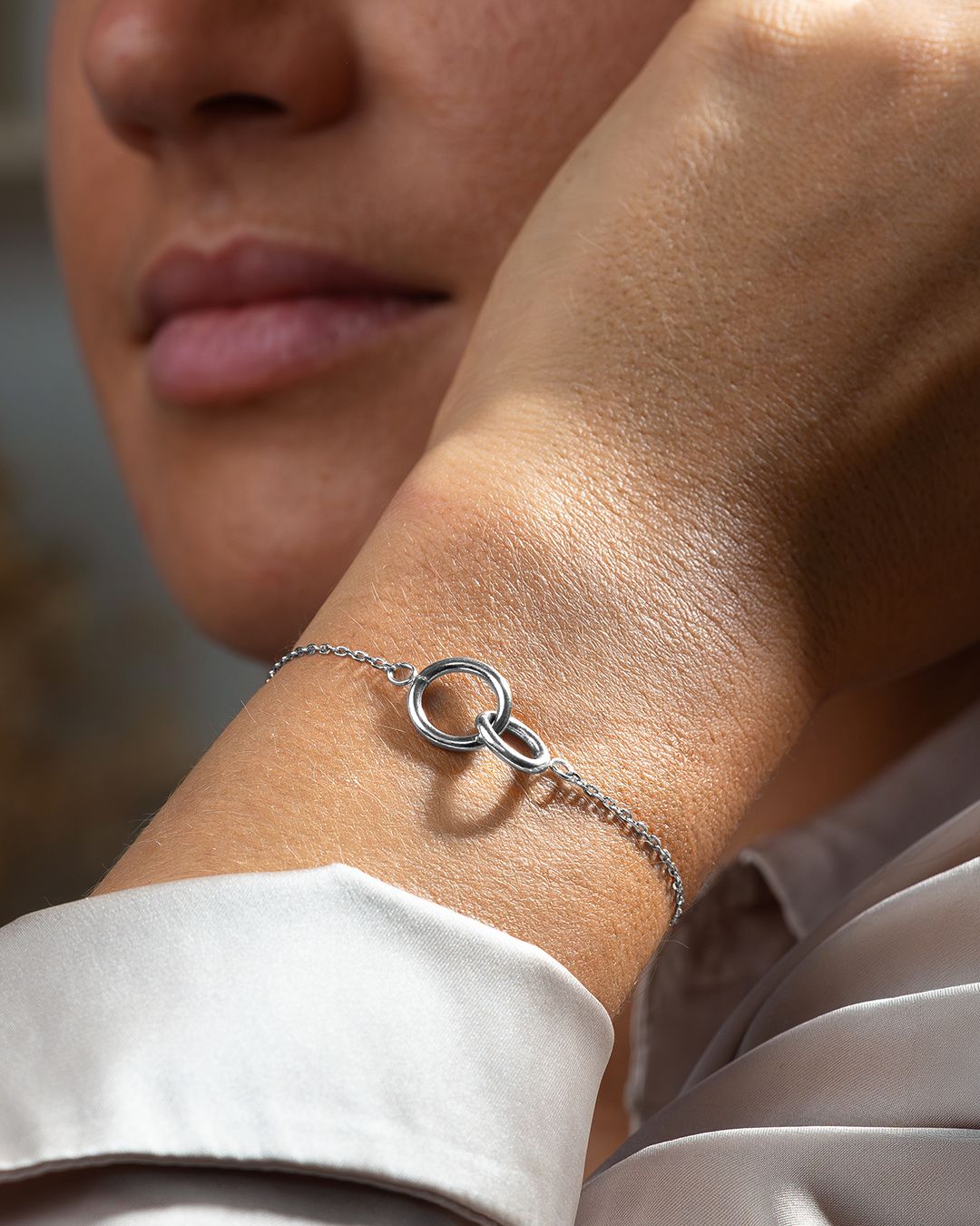 Il bracciale Eterniti si distingue per i suoi due cerchi intrecciati.