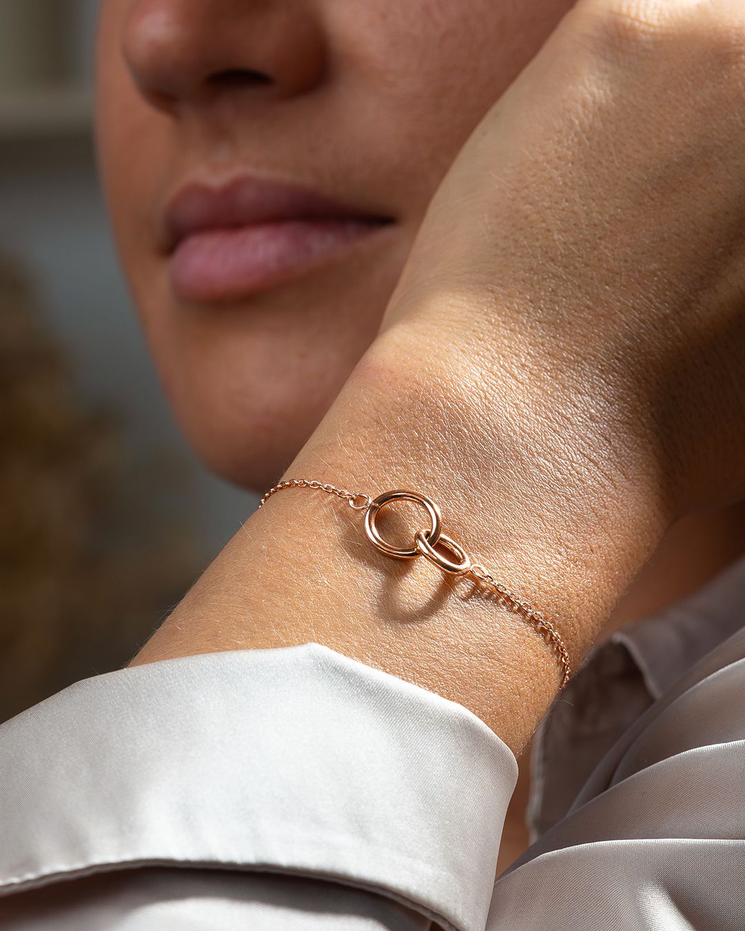 Il bracciale Eternitia si distingue per i suoi due cerchi intrecciati.
