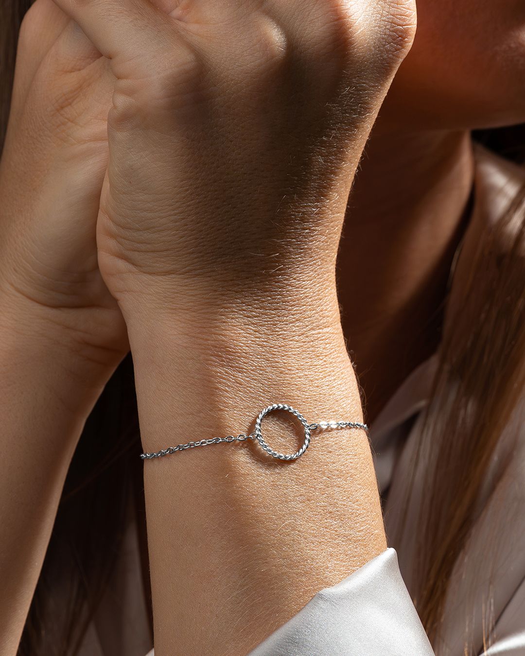 Il bracciale Harmoni affascina con il suo anello dal motivo intrecciato.