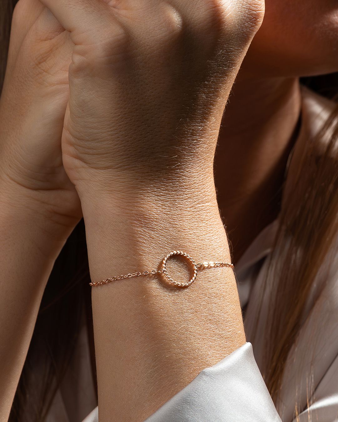 Il bracciale Harmonia affascina con il suo anello dal motivo intrecciato.