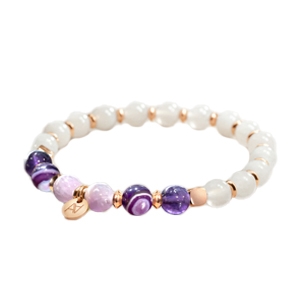Il bracciale 7 chakra Equilibrio è composto da pietre di Ametista lavanda, Calcedonio, Acquamarina, Avventurina, Citrino, Pietra del sole e Diaspro rosso, completato da Pietra di luna.