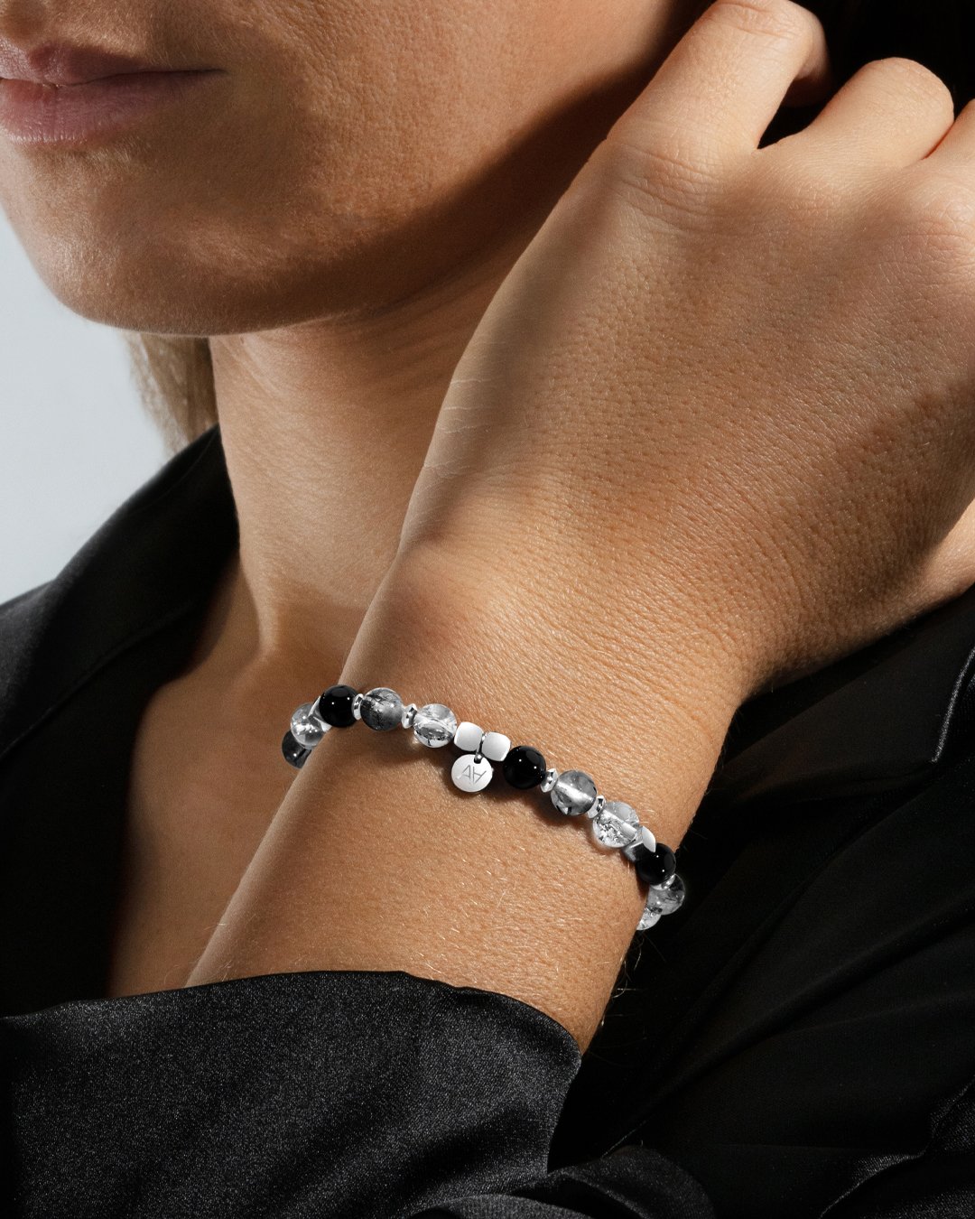 La delicata e potente associazione del Cristallo di rocca crack, del Quarzo rutilato e dell'Onice dispiega un panorama di energie vibrazionali sinergiche il cui scopo è portare chi lo indossa verso una fiducia in sé stessi rafforzata da una chiarezza mentale senza pari.