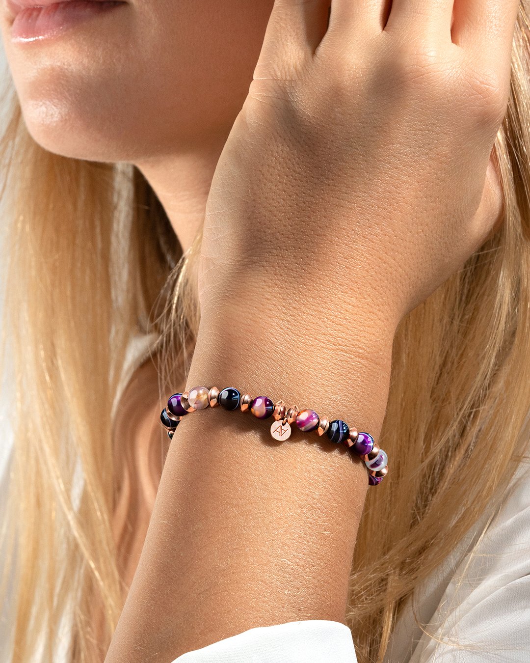 Ma i suoi attrattivi non si fermano qui. È rinomata per calmare, equilibrare l'energia, favorire l'introspezione e scacciare le emozioni negative. Circondarsi di agata striata viola significa aprire il cuore a giorni più sereni.