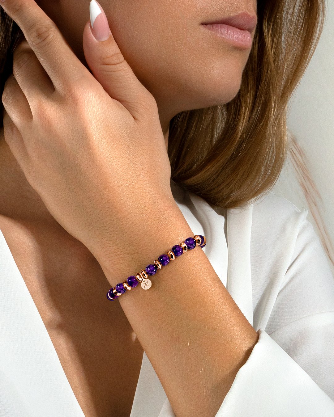 - Materiale del braccialetto Acciaio rosa inossidabile e ametista