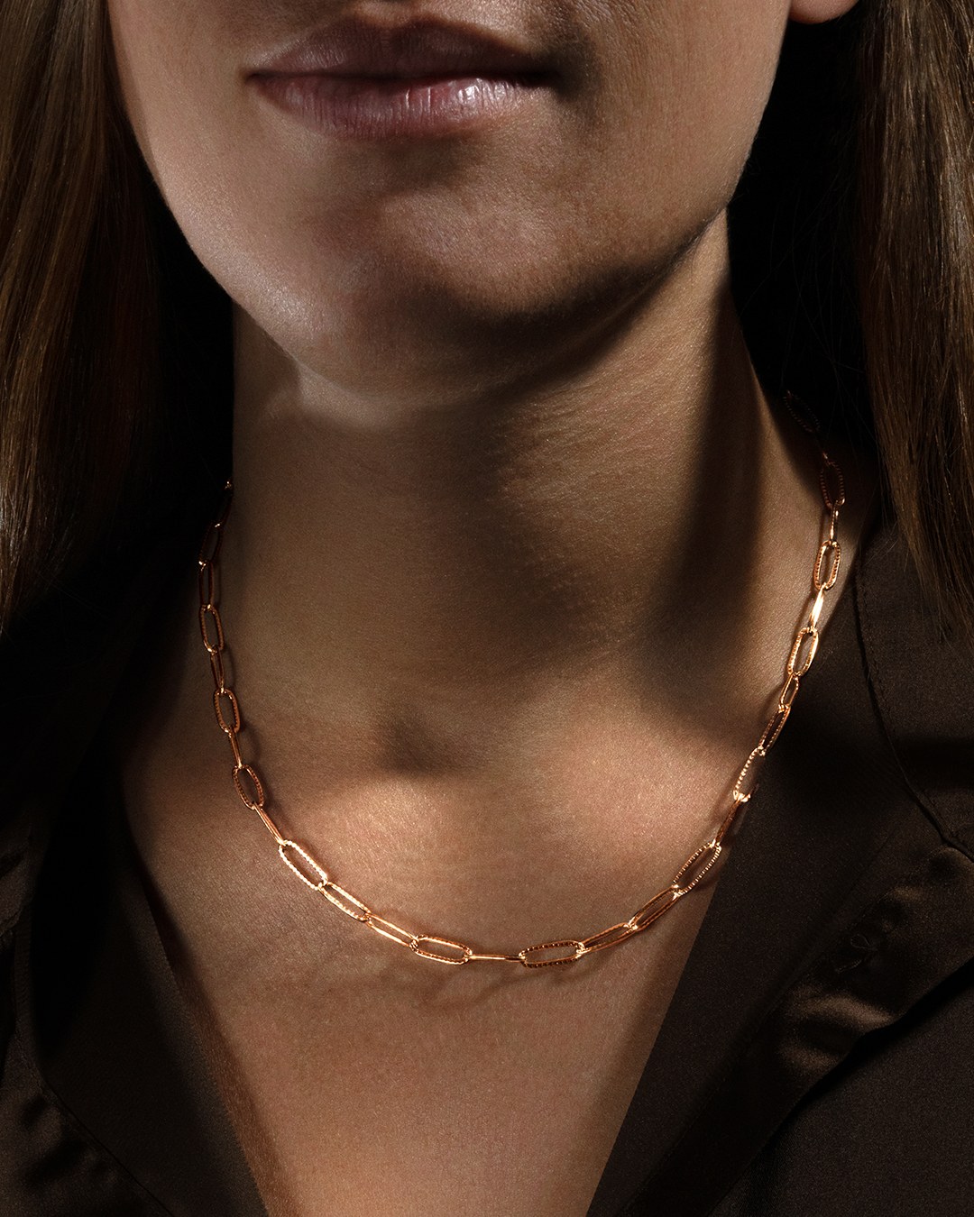 La collana Gaïana Rosa è composta da una catena, ornata da delicati maglie martellate, in acciaio rosa inossidabile.
