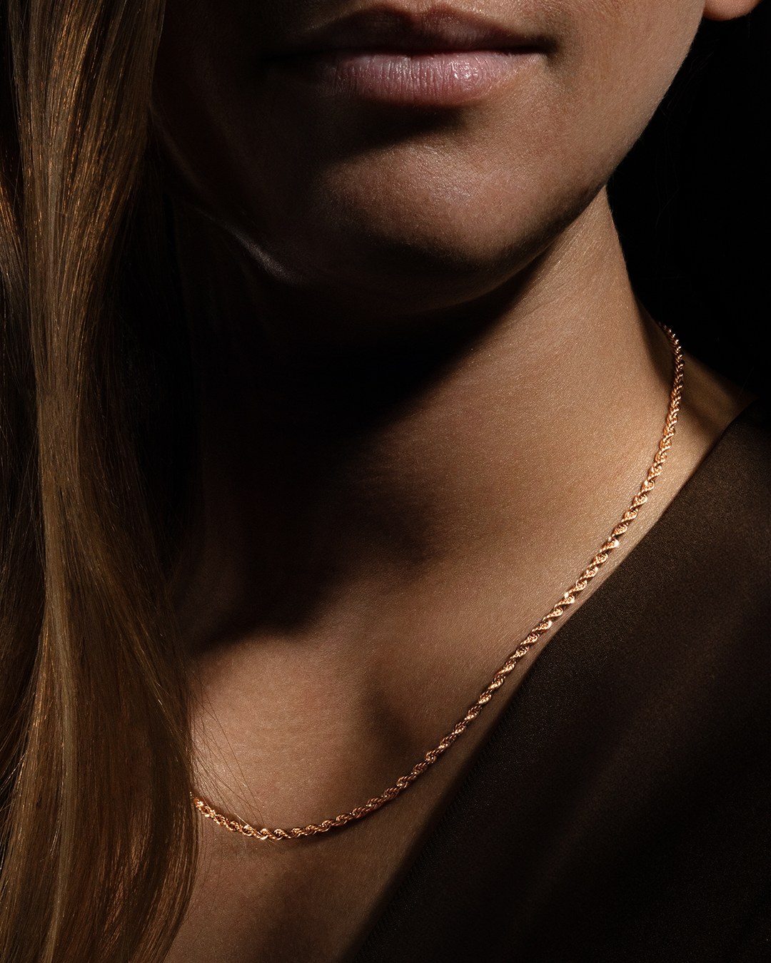 La collana Mina Rosa si caratterizza per una catena delicatamente intrecciata in acciaio rosa inossidabile.