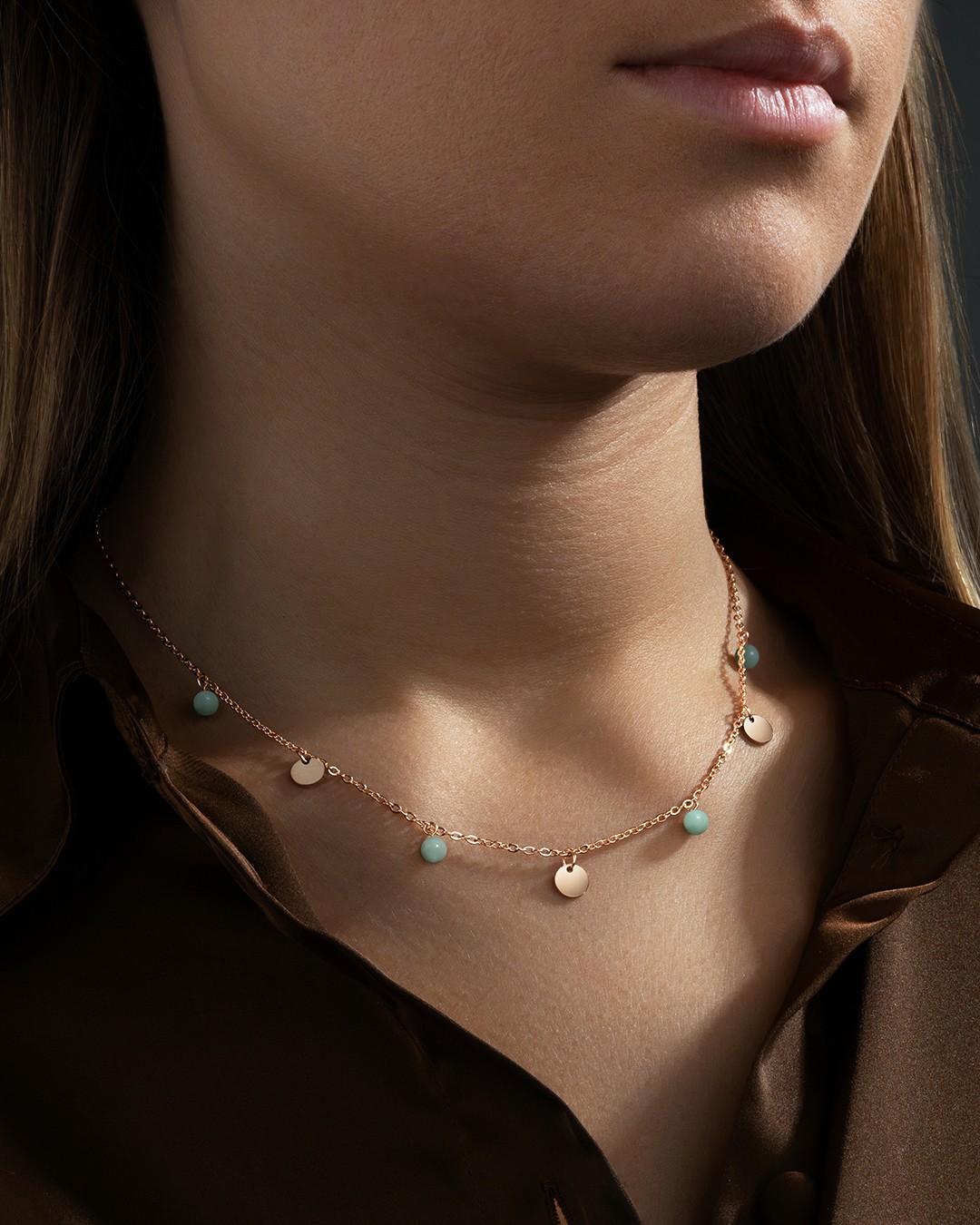 Misurando 48 cm di lunghezza con una parte regolabile di 6,5 cm, questo collier è progettato per adattarsi facilmente al tuo collo.