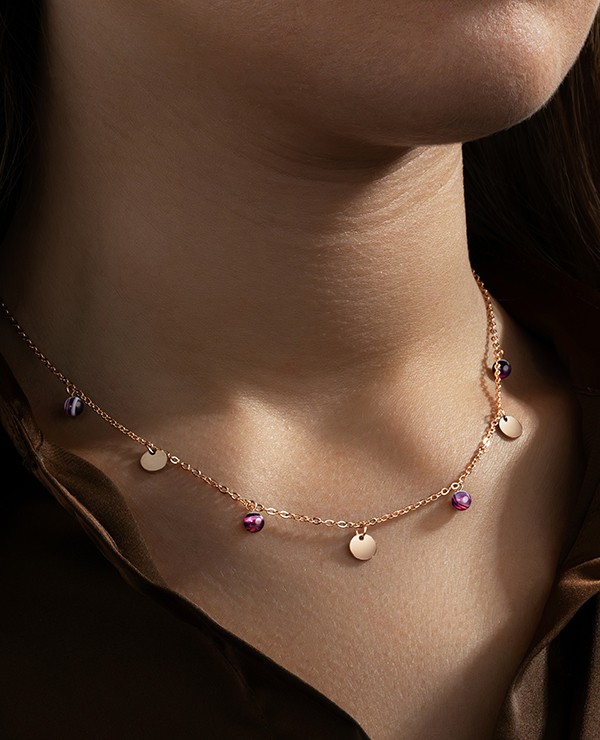 I nostri gioielli sono composti da pietre naturali, quindi sono tutte diverse. Di conseguenza, possono apparire differenze di dimensioni e sfumature di colore a seconda dei modelli. Sono queste distinzioni che rendono ogni pietra unica.